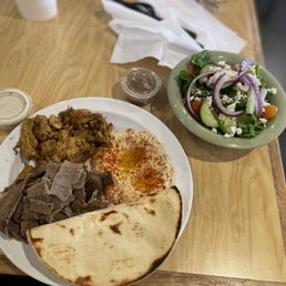 The place looks smaller from outside but when entering there are several tables on the left side, and a long counter table at the window, so you can enjoy your food and gaze outside. I had to have some babganoush, delish and garlicky, then a gyro pita because I love that and could eat gyros every day. We got our food to go so not having dined in can't give an opinion on the service - I think you order at the counter and take your food to your table. The gentleman that got our order - and I got a free piece of baklava for checking in - was friendly and nice, and very efficient with the orders. Some regulars were picking up their orders, while some were dining inside: everything and the whole place was friendly and even tbough the gentleman getting orders at the entrance, he was not terribly frazzled but kept everything under control. Now I just "have" to go get another gyro and oh my! more yummy baklava, so photos will be added. See you soon MVPita !!